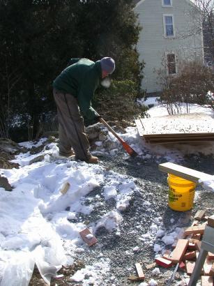 Picking at the frozen gravel pile