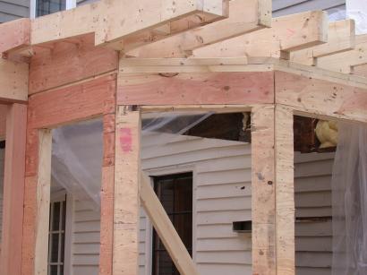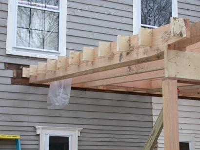 Overhang in progress on end of porch