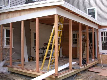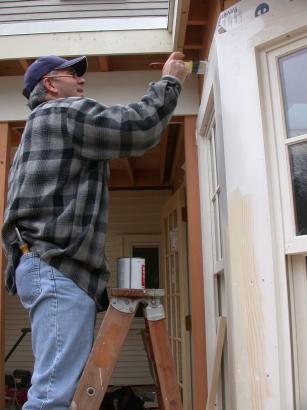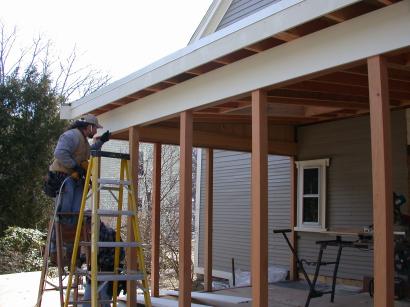 Trim in progress on porch corner