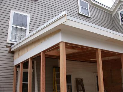 Finished porch corner with soffit work done