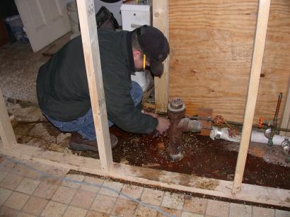 Joe the plumber reroutes the water pipes to the laundry room so we can keep the water running there.