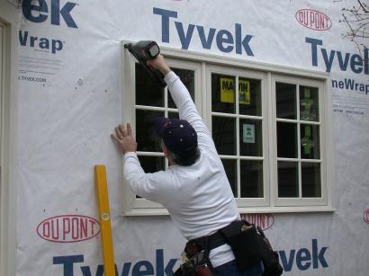 Lifting the window into place.