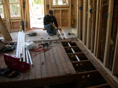 Joe removing the old water pipes to where the new pipes will be routed through the ceiling.