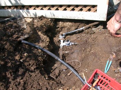 Repaired solenoids near the corner of the porch.