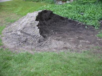 The day laborer (namely me) starts spreading loam to get ready for lawn reseeding.