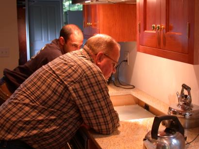 Uh-oh! There is a problem with the cooktop installation - there should be a gas sutoff within six feet of the gas appliance, but we have provided for none and there is no good way to install one at this point. In our next life, the gas line would be run first to the sink area where a shutoff would be installed under the sink. The inspector passed the job with my OK that I would go down to the basement shutoff in case of a problem. Note that in most installations the shutoff is put behind the stove, which is useless in case of a problem with the stove.