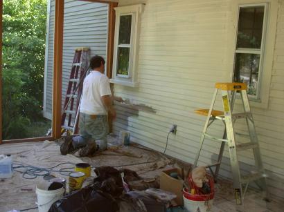 Billy priming the porch back wall.